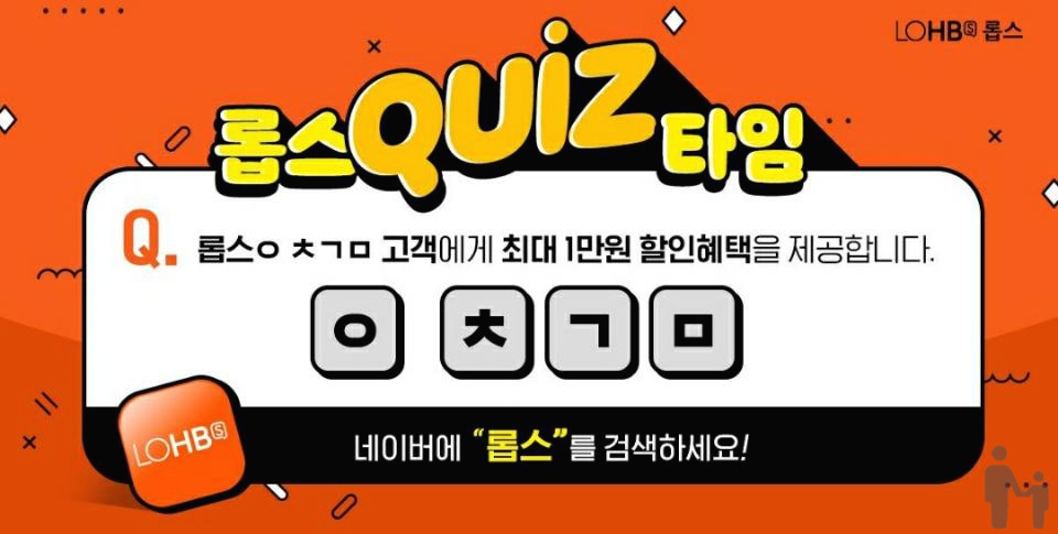 롭스ㅇ ㅊㄱㅁ 고객에게 최대 1만원 할인 혜택을 제공합니다. ㅇㅊㄱㅁ에 들어갈 단어는 무엇일까요?(초성힌트 ㅇㅊㄱㅁ)