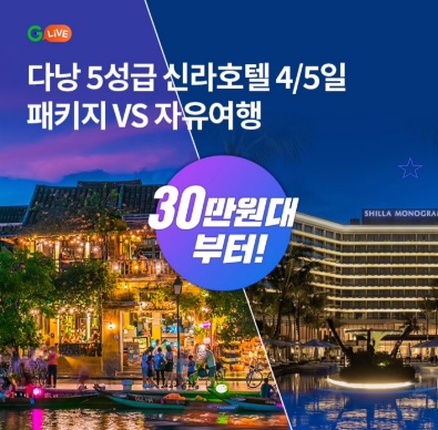 다낭 5성급 신라호텔 패키지 VS 자유여행 4일/5일 라이브에!품격있는 다낭 여행 초특가 30만원대부터 판매하는 할인 혜택을 절대 놓치지 마세요!올 여름 여행 준비 완료!