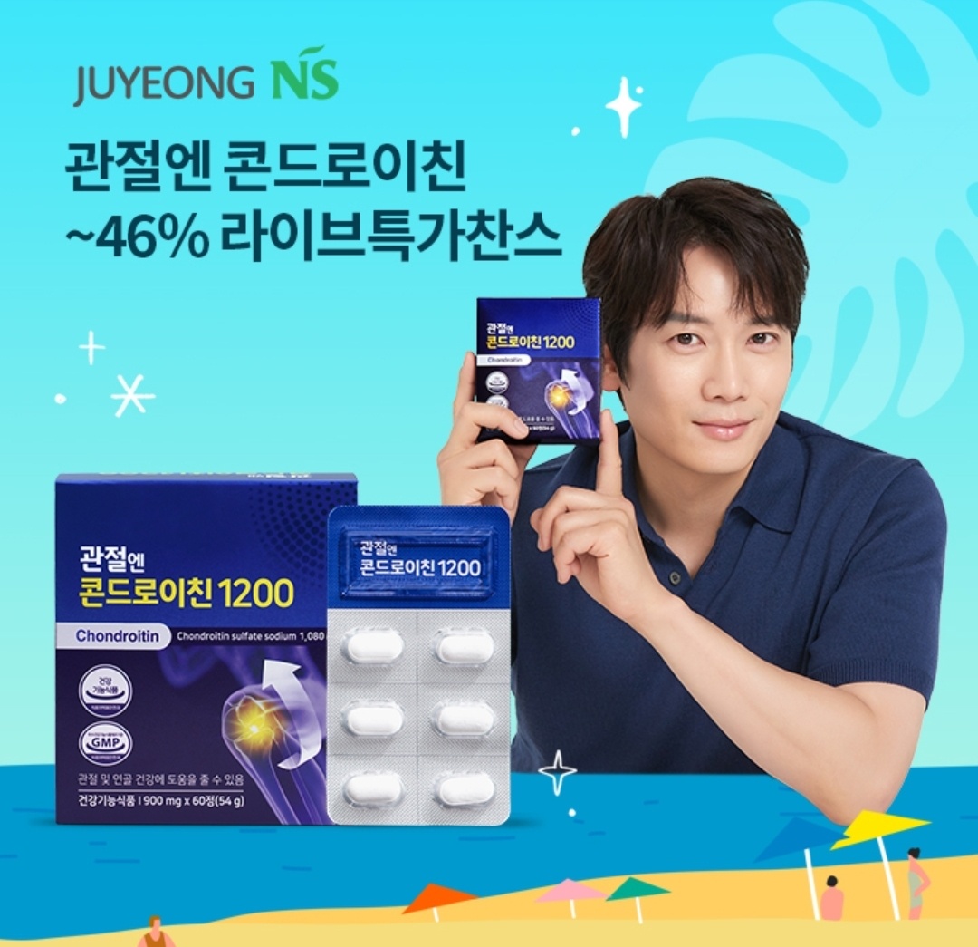 2023년 7월 4일 7시 주영엔에스 관절엔콘드로이친 오퀴즈 문제 : 배우 ___이 선택한 관절엔 콘드로이친 1200은 대한민국 최초 콘드로이친 제품으로, 관절 및 연골 건강에 도움을 줄 수 있는 건강기능식품입니다. 사람 연골과 구조가 동일한 소 연골 추출 콘드로이친 100%만을 사용하였습니다.