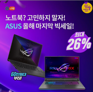 노트북? 고민하지 말자 ASUS 노트북 최대 26% 할인으로 60만원대부터 만나보세요!