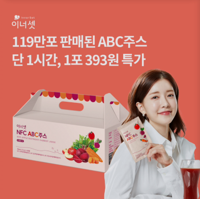 이너셋 119만포 판매된 ABC주스 단 1시간, 1포 393원 특가