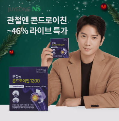 2023년 12월 20일 8시 주영엔에스 관절엔 지성의 콘드로이친 라이브 특가 오퀴즈 문제 : 배우 지성이 선택한 관절엔 콘드로이친 1200은 대한민국 최초 콘드로이친 제품이랍니다. 실온 보관이 가능해 어디서든 간편하게 하루 __알로 관절 및 연골 건강에 도움을 받아보세요!