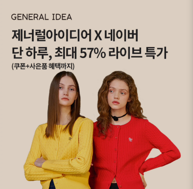 제너럴아이디어 X 네이버 단 하루, 최대 57% 라이브특가(쿠폰+사은품혜택까지)