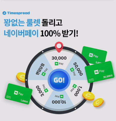 타임스프레드 꽝없는 룰렛 돌리고 네이버페이 100% 받기!