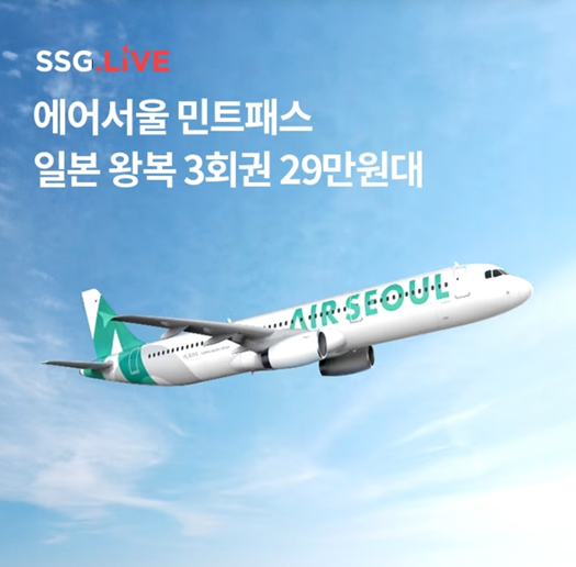 SSG 라이브 쓱 라이브 에어서울 민트패스 일본 왕복 3회권 29만원대
