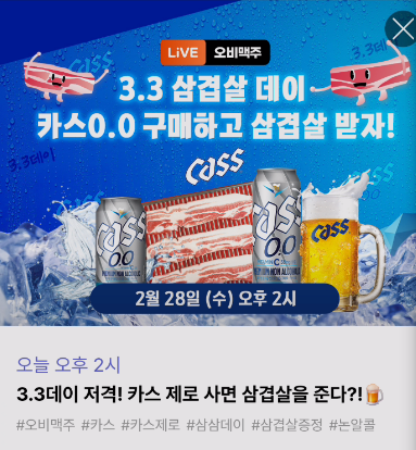 #오비맥주 #카스 #카스제로 #삼삼데이 #삼겹살증정 #논알콜
