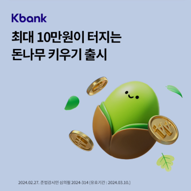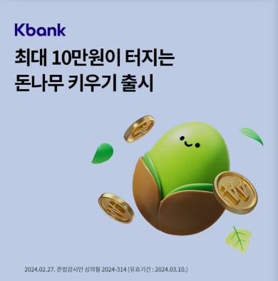 Kbank 최대 10만원이 터지는 돈나무 키우기 출시