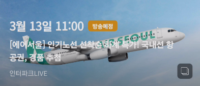 3/13(수) 오전 11시, 인터파크 라이브에서 인기노선 항공권 특가로 만나보세요!