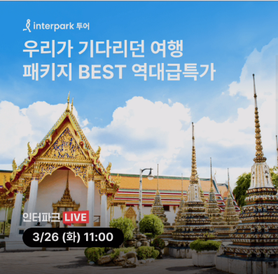 2024년 3월 26일 11시 인터파크투어 우리가 기다리던 해외여행 패키지 어게인 모음 BEST 역대급특가 오퀴즈 문제 : 3/26(화) 오전 11시, 인터파크 라이브에서 해외여행 베스트 상품 최대 특가로 만나보세요!