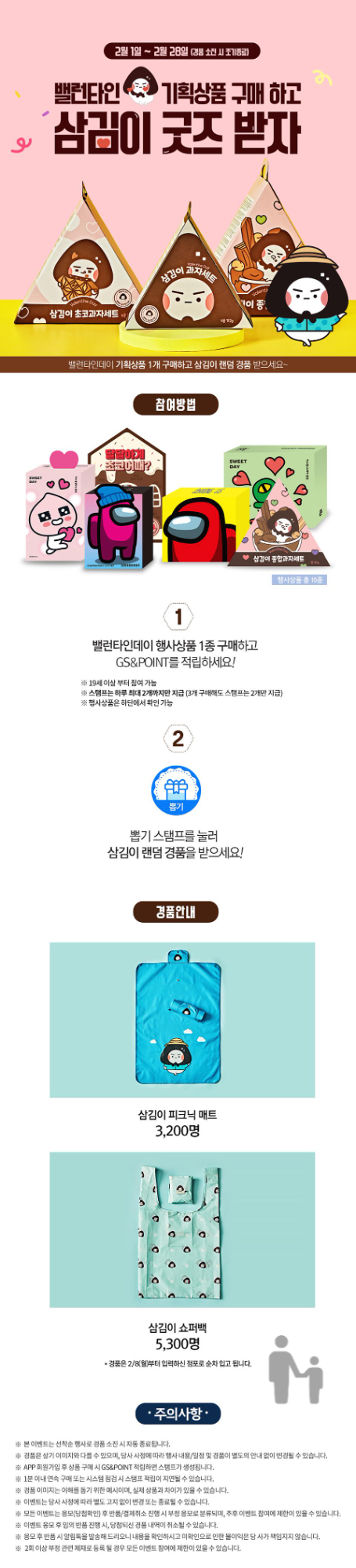 밸런타인 기획상품 구매하고 삼김이 굿즈 받자!
