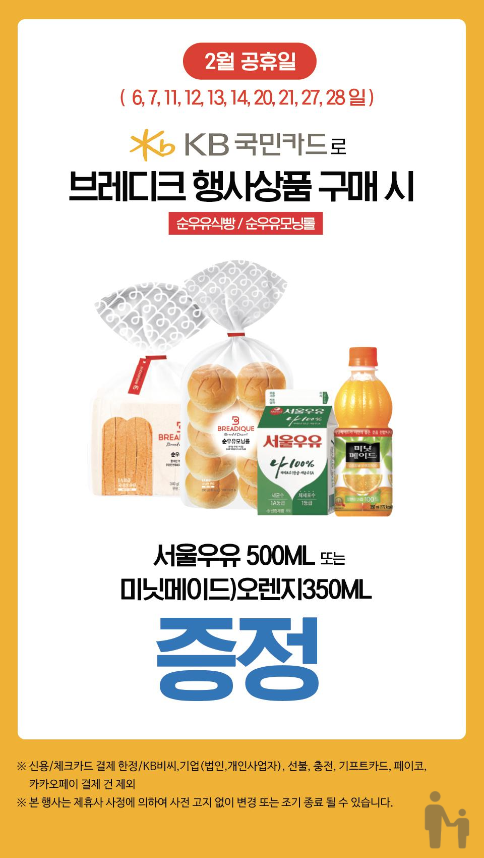 2월 공휴일, KB국민카드로 브레디크 행사상품 구매 시 음료 증정!