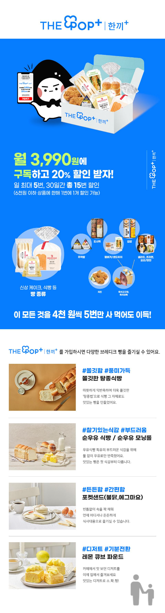 월 3,990원에 구독하고 20% 할인받는 구독 서비스입니다. 일 최대 5번 30일간 15번 할인 가능하며 그림의 제품군 구매 가능합니다. 자주 애용하시는 분들에 에는 도움이 될 듯합니다.