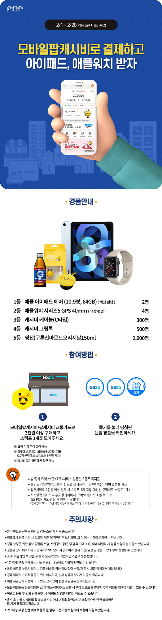 모바일팝캐시비로 결제하고 아이패드, 애플워치 받자!