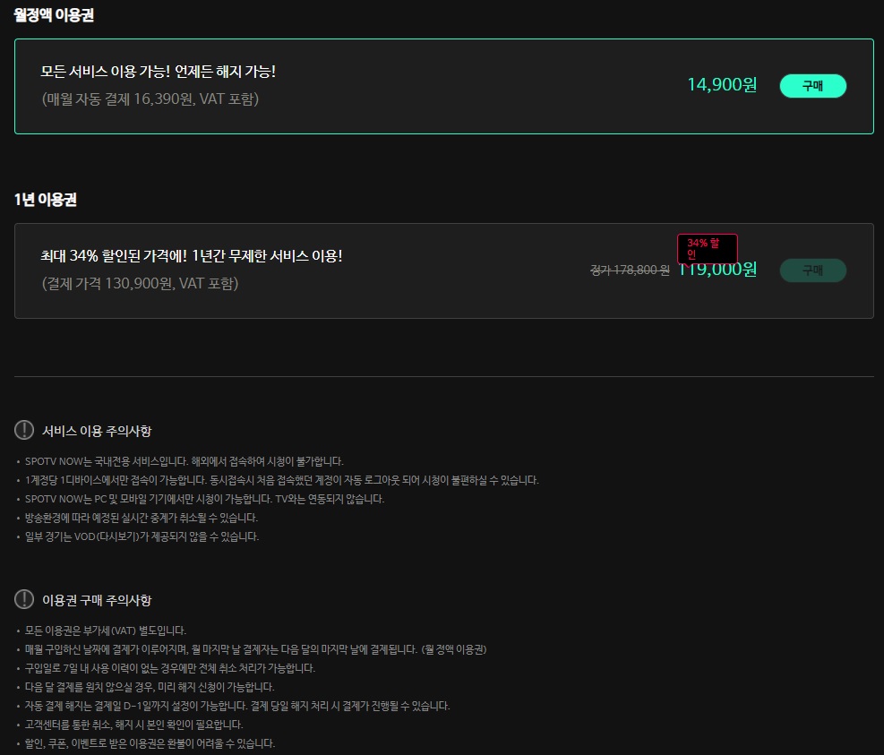 스포티비 나우 유료 결제 가격(출처:SPOTV)