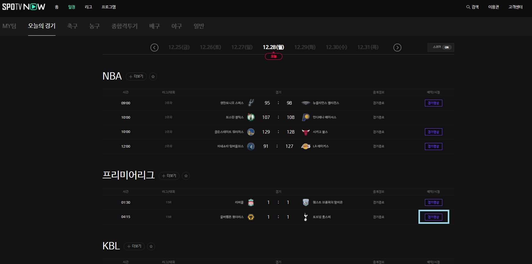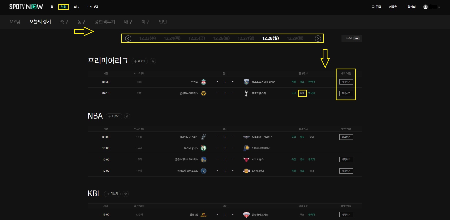 SPOTV 나우의 경우 유료 서비스를 구축하고 있다는 점 참조 부탁드리며 해당 콘텐츠에 유료, 무료 표시가 되어있으니 참조하셔서 시청하시면 도움이 될 듯합니다. 춥거나 덥거나 야간 업무가 있거나 SPOTV NOW를 활용해보세요! (3월 부터 EPL 전체 경기 유료로 전환되었습니다. 유로파 리그, FA 컵은 토트넘 경기도 유료 편성되었습니다. 참조 부탁 드리겠습니다)