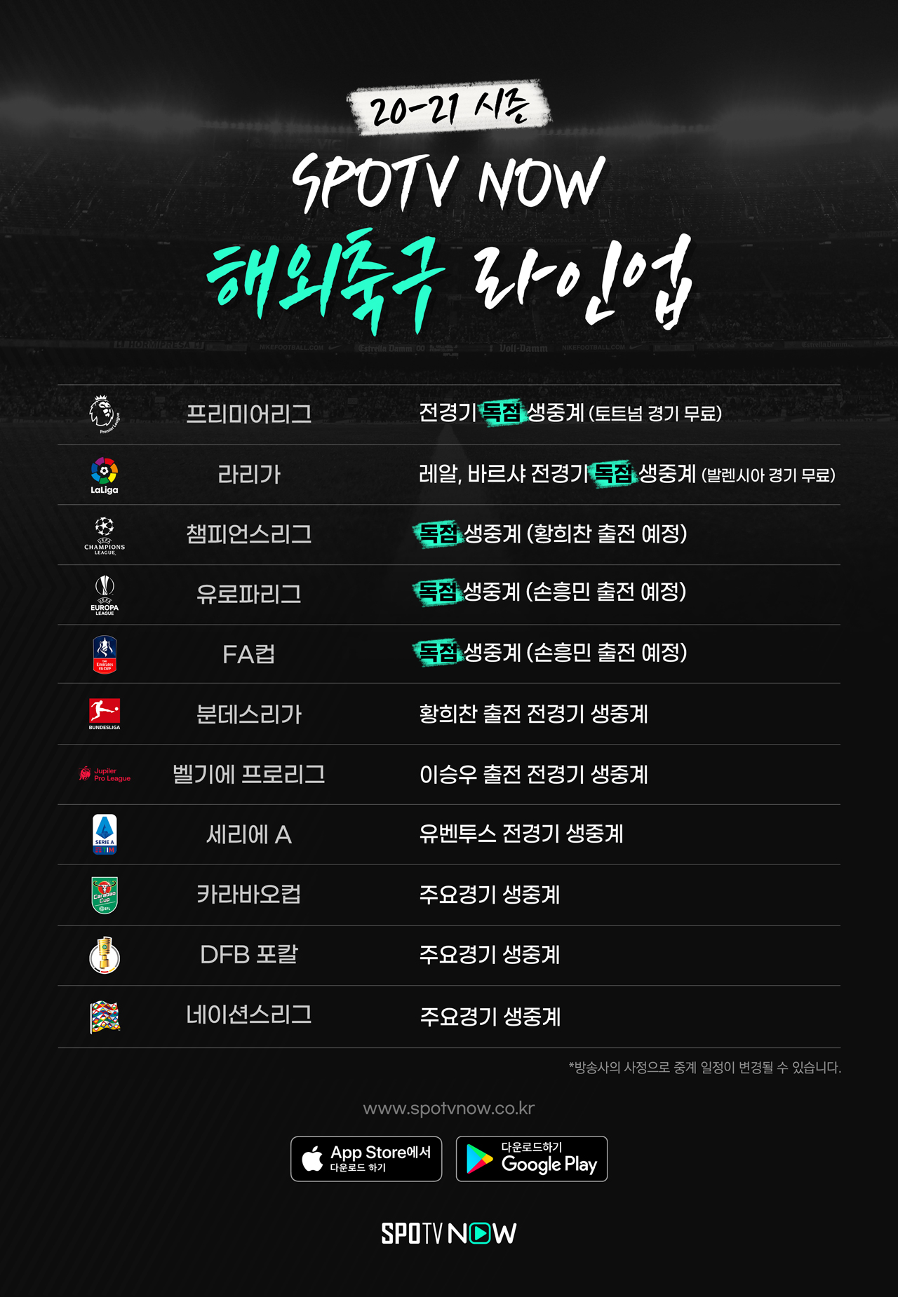 20-21시즌 스포티비 라인업(출처:스포티비공홈)