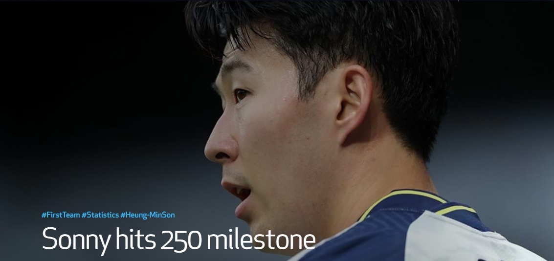 손흥민 250경기 출전 기록(출처 : 토트넘 공홈)