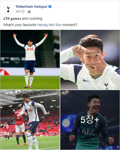 손흥민 250경기 출전 기록(출처 : 토트넘 공식 페이스북)
