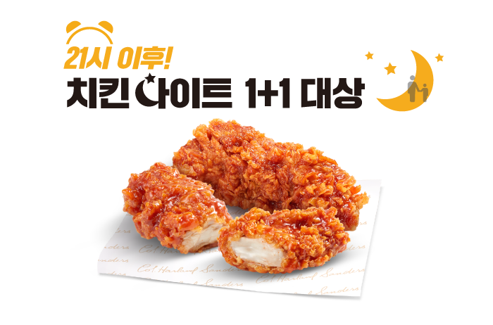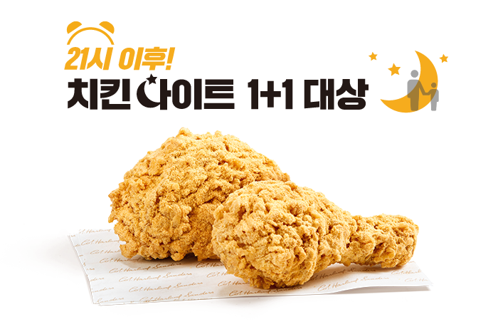 KFC 치킨나이트 저녁 9시부터 영업종료 시까지 치킨 1+1