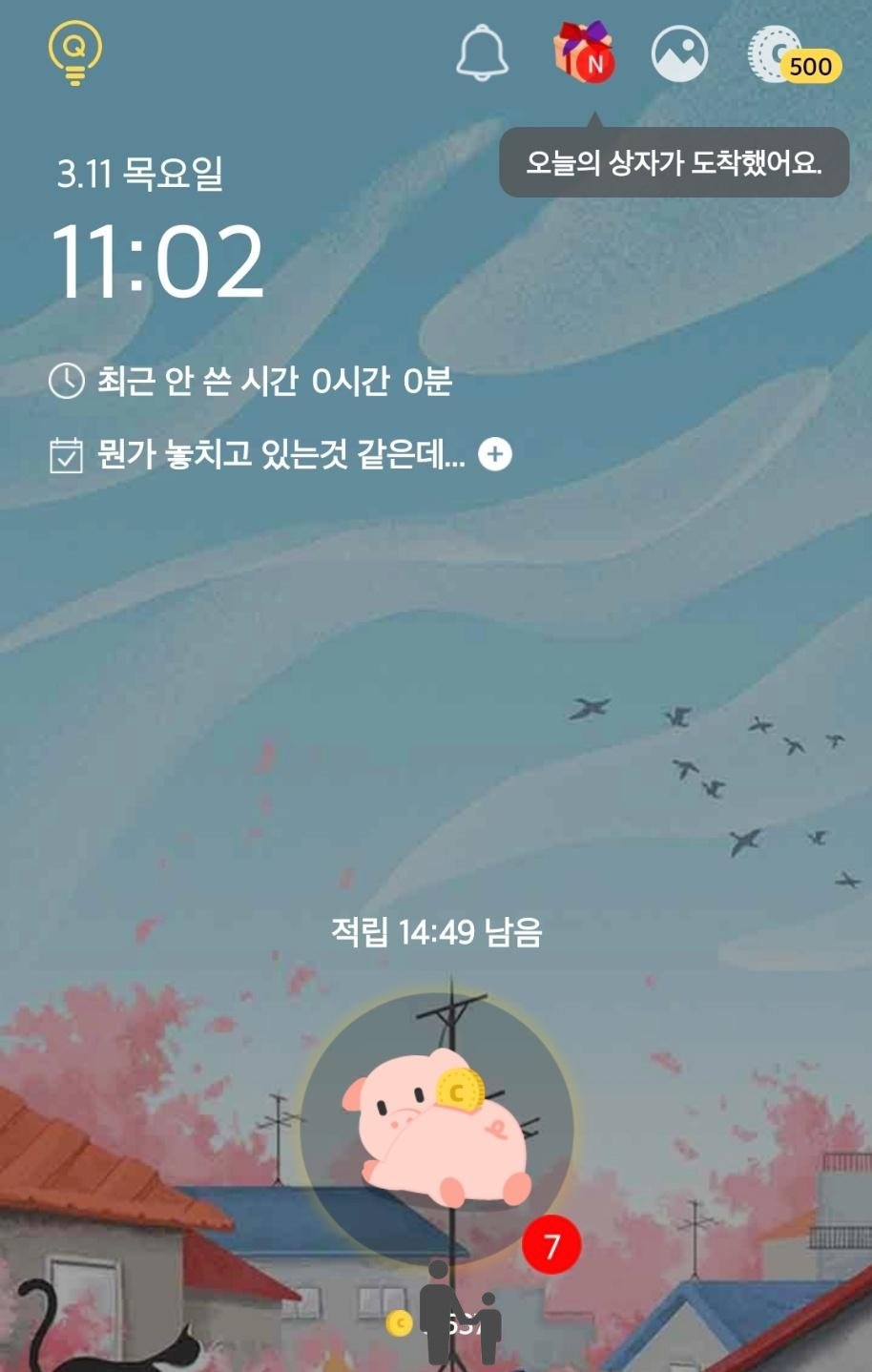 잠금화면에서 돼지를 꾸욱 누르면 다른 메뉴로 이동할 수 있습니다. 저 같은 경우는 꽉 잠금모드 실행을 위해 주로 사용하며 커뮤니티나 사용시간 확인 시간표(구글과 연동 가능) 등을 확인하실 때 사용하시면 됩니다.