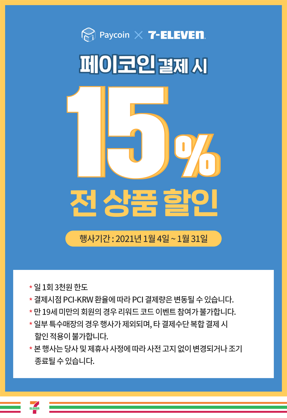 페이 코인과 제휴되어하는 행사로 보입니다. 페이코인 사용자 분들이나 신규 사용자 분들은 참여하시면 좋을 듯합니다.전상품 15%긴 한데 일 1회 3천 원 한도인 점도참조하시기 바랍니다. 그리고 대부분 이런 이벤트는 월 초 점주님들이 대부분 모르시거나 혹은 미적용 매장일 수 있으니 편의점 방문하여 사전 문의 후 구매 진행하시는 게좋습니다.