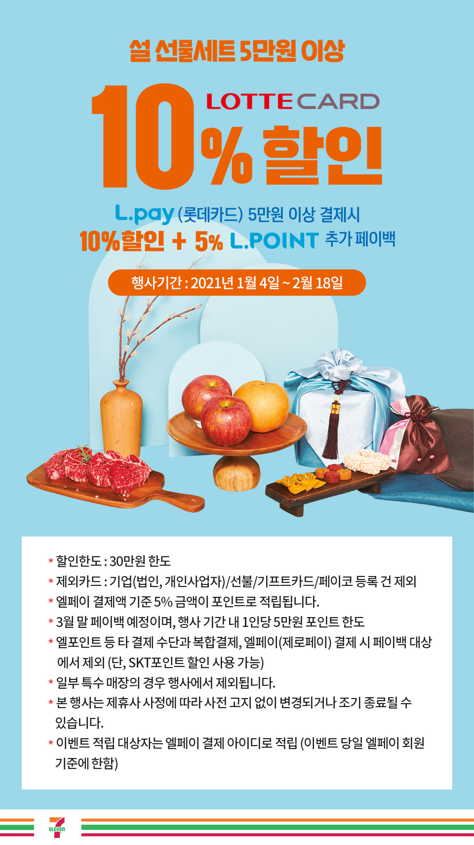 아래의 설 선물세트 5만 원 이상 품목의 경우는 통신사 할인이 되며 롯데카드로 구매해야 할인 및 페이백이 되기 때분에 아래 유의사항 반드시 확인하여 구매하시면 될 듯합니다. 이런 포인트, 할인 제도를 잘 참조한다면 마트나 백화점보다 저렴하게 구매할 수 있으니 참조하셔서 선물 준비하시면 도움이 될 듯합니다.