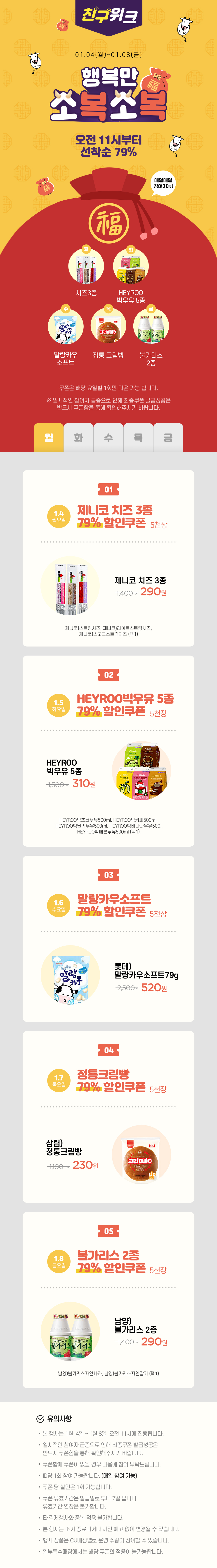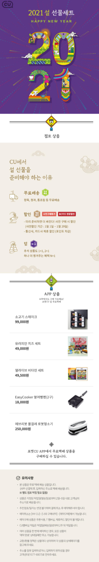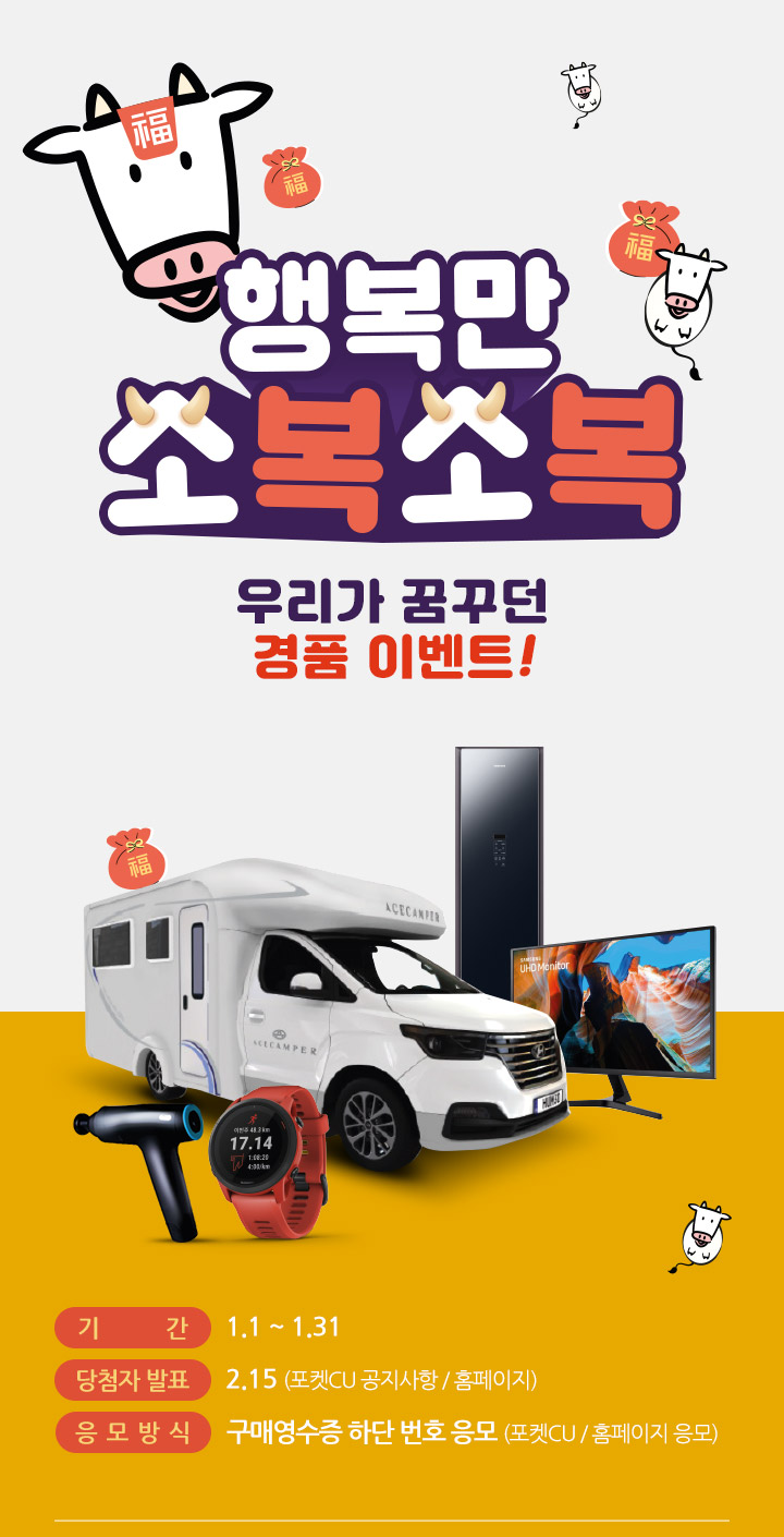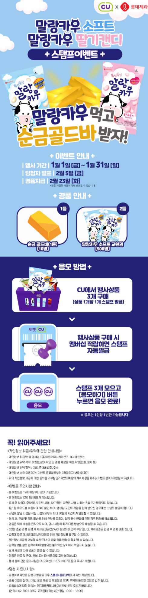 역시 국내 대장 편의점인 CU입니다. 편의점 행사 정리느라 지치기는... 어제 포스팅한 GS25보다 더힘드네요.... CU 1월행사는 편의점 와인, 편의점 맥주 행사가 눈에 띄는 것 같습니다. 해당 행사들 참조하셔서 슬기롭고 경제적인 쇼핑하시기 바랍니다. CU 1월행사 몰아보기 링크와 CU 매장 찾기 바로가기 참조하셔서 즐거운 쇼핑되시기 바랍니다. 앞으로도 매월 편의점 행사 정리하여 올릴 예정이니 구독과 공감 부탁드립니다. 감사합니다.