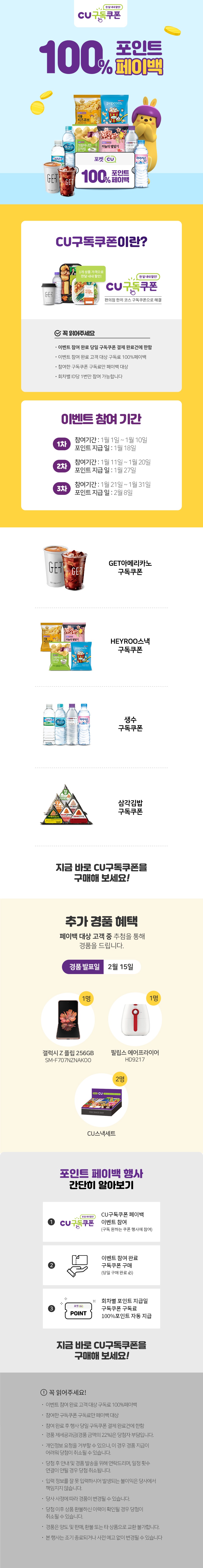 GS 나만의 냉장고 서비스처럼 포켓 CU키핑 쿠폰 사용이 가능하게 되었습니다. 증정품 소화가 힘들 때 키핑 하여 사용하시면 될 듯합니다. 그리고 CU도 구독 프로그램을 진행합니다. 커피, 생수, 스낵, 삼각 김밥을 선택하여 1달 내내 할인된 금액으로 제공받는 구독 서비스입니다. 론칭 기념으로 첫 달 포인트가 페이백 되니 그 점 참조하시기 바랍니다.