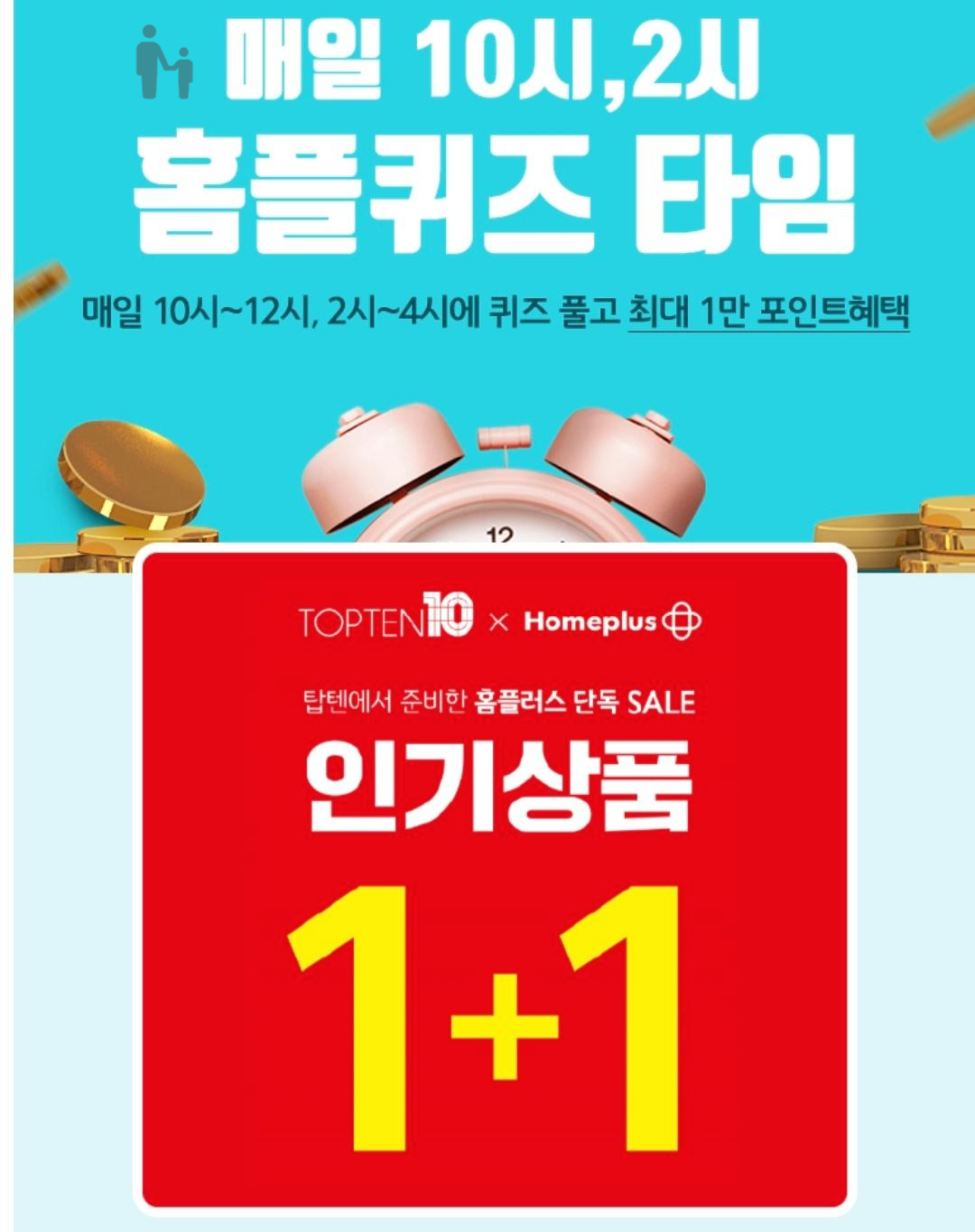 홈플러스 퀴즈 4월 16일 2시 홈플퀴즈 홈플 탑텐세일 1+1