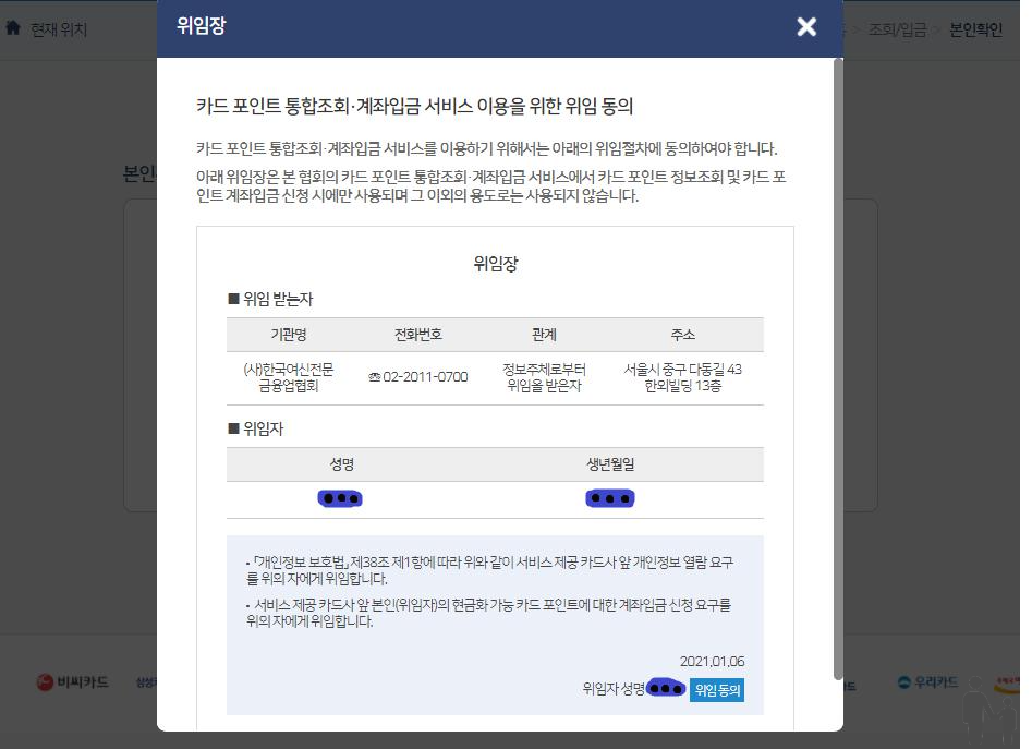 카드포인트 통합조회 설명을 위해서 시작은 하였으나 막상 포인트가 나온 걸 보고 입금 처리를 해야 하나 말아야 하나 고민을 했습니다. 그래도 이런 시스템이 있어서 포인트가 처치 곤란이거나 어디에 있는지도 모르고 쌓여만 있었다면 충분히 메리트가 있는 기능이라고 생각합니다. 서두에도 감사를 칭했지만 이런 편리한 시스템을 만들어주셔서 너무나도 감사드립니다. 앞으로도 소비자들을 위한 이런 서비스가 지속적으로 만들어지고 성장했으면 하는 바람입니다. 오늘도 읽어주셔서 감사드립니다! 도움이 되셨다면공감+구독부탁드립니다!감사합니다.