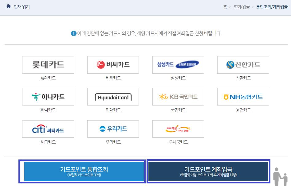카드포인트 통합조회 계좌입금?