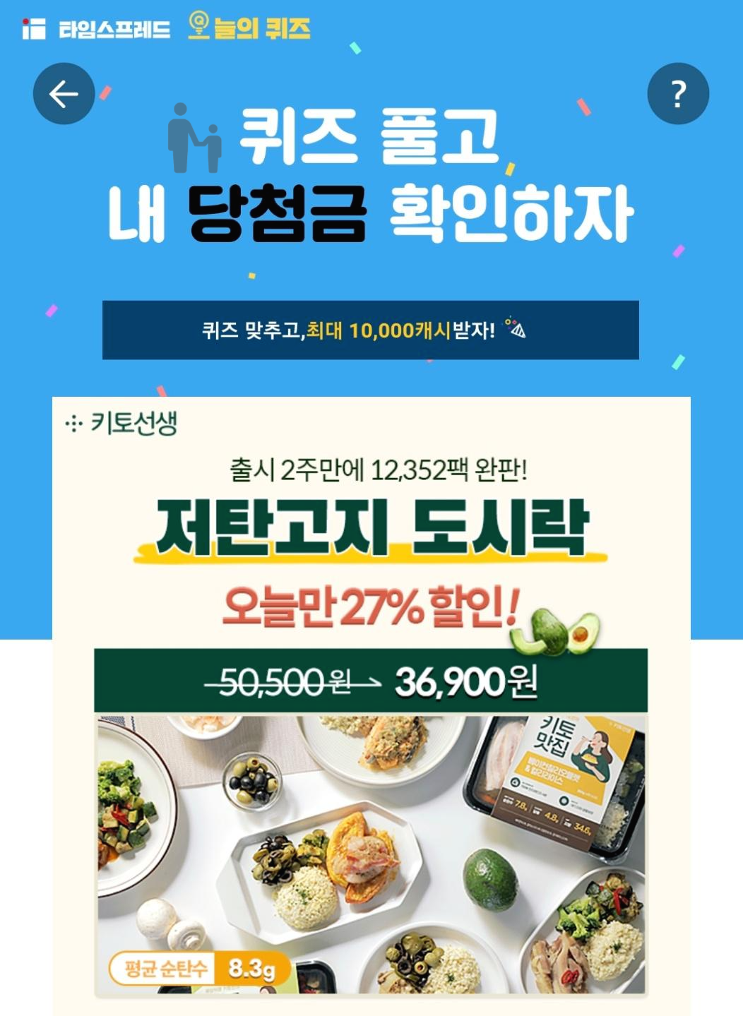#4월 21일 키토제니 키토선생 저탄고지 도시락 타임스프레드 오늘의 퀴즈 실시간 정답 2주만에 OOOOO팩이 완판