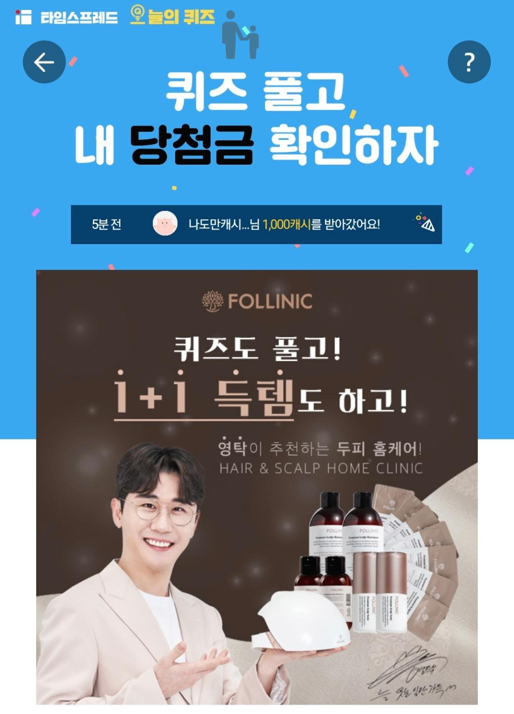 #4월 23일 영탁 추천 두피 클리닉 폴리니크 타임스프레드 오늘의 퀴즈 캐시워크 돈버는퀴즈 실시간 정답 ㅎㅇㅁㅌ