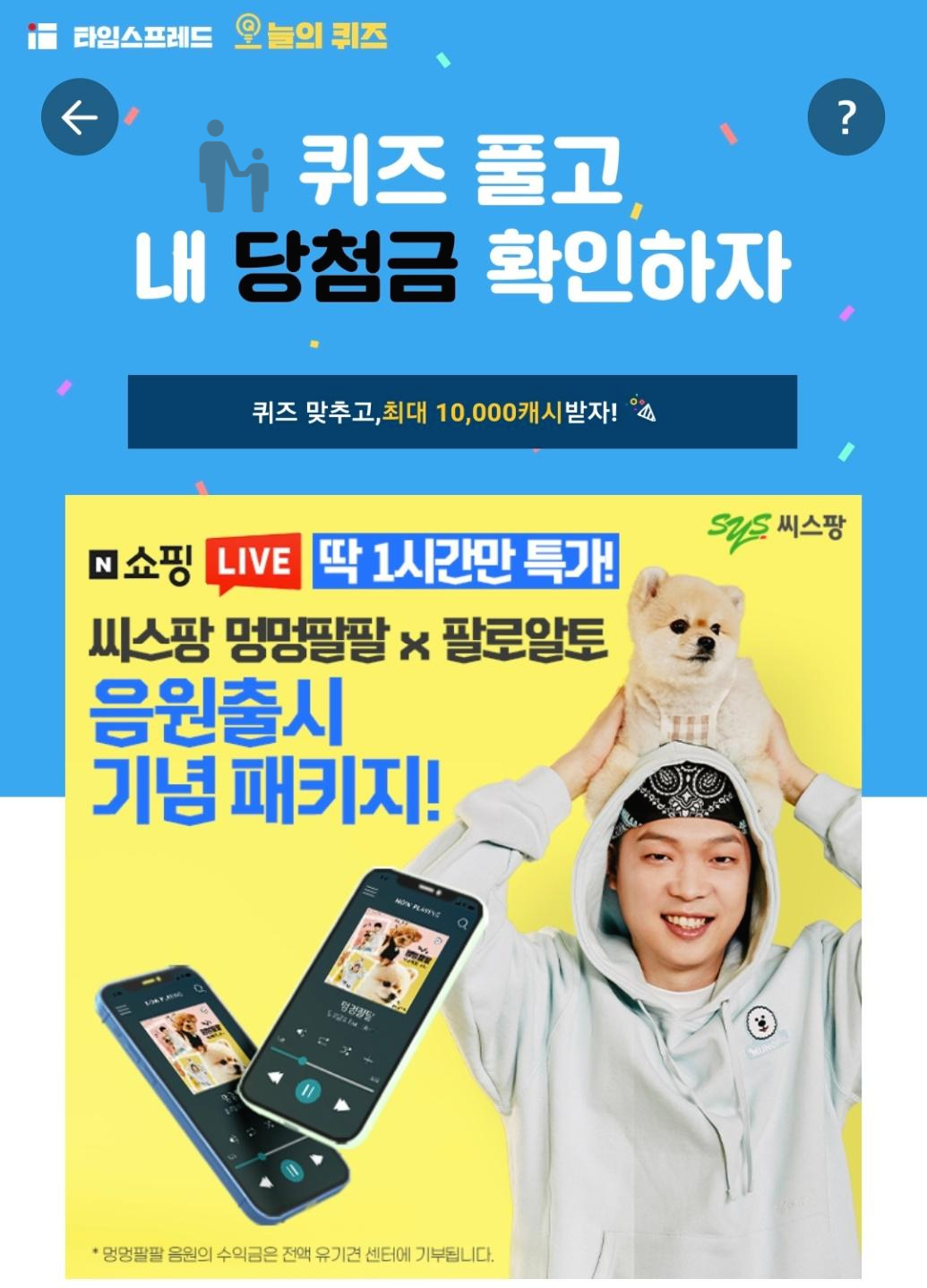 4월 23일 씨스팡 타임스프레드 오늘의 퀴즈 정답 멍멍팔팔OOOOO 출시