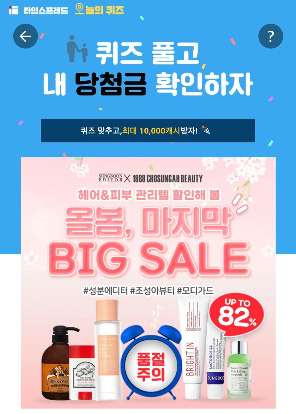 4월 21일 조성아뷰티 성분에디터 타임스프레드 오늘의 퀴즈 정답 ㅂㅍㅊㅊㅁ