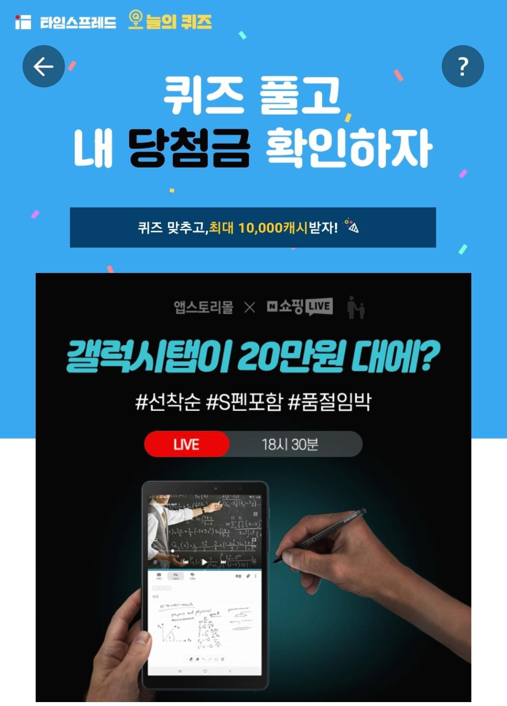 4월 28일 앱스토리몰 갤럭시탭 타임스프레드 오늘의 퀴즈 정답 삼성 갤럭시 탭A8.0 OOOO S펜